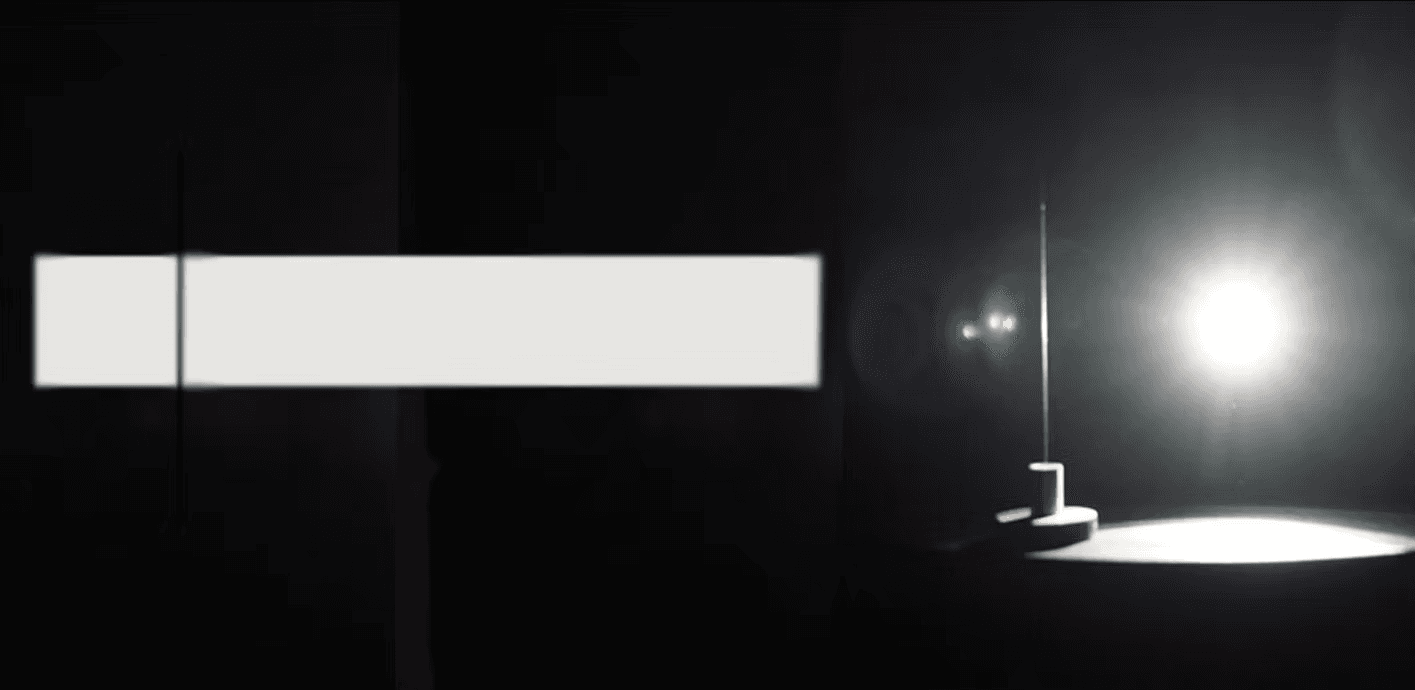 The shadow of the metal rod moves slowly across the screen at 0.315 m/s, one billionth of the speed of light as calculated by Fizeau. This movement of the shadow is accompanied by a sound signal that propagates at regular intervals throughout the shadow's progression across the screen.