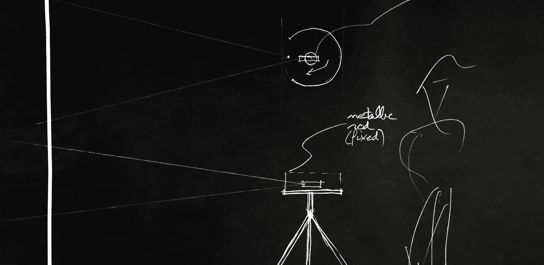 Then the halo leaves the white surface, making it disappear from our field of vision. The light continues to spin through space, describing a new 360° revolution.